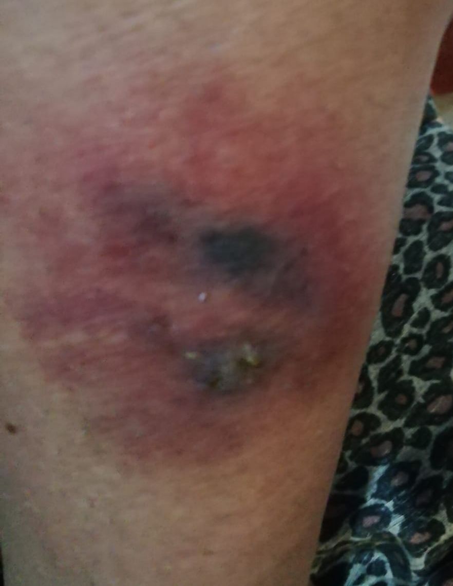 “Sto facendo la cura con cortisone e antibiotico, è successo 5 giorni fa”, scrive nel proprio profilo Facebook, “mi hanno detto che sarei dovuta andare subito all’ospedale per rimuovere il veleno ma non pensavo fosse cosi grave. Ora si è formata una zona necrotica. Ora faccio la cura per una settimana poi devo tornare in ospedale per capire se ci sarà da fare un piccolo intervento per rimuovere la parte morta”.