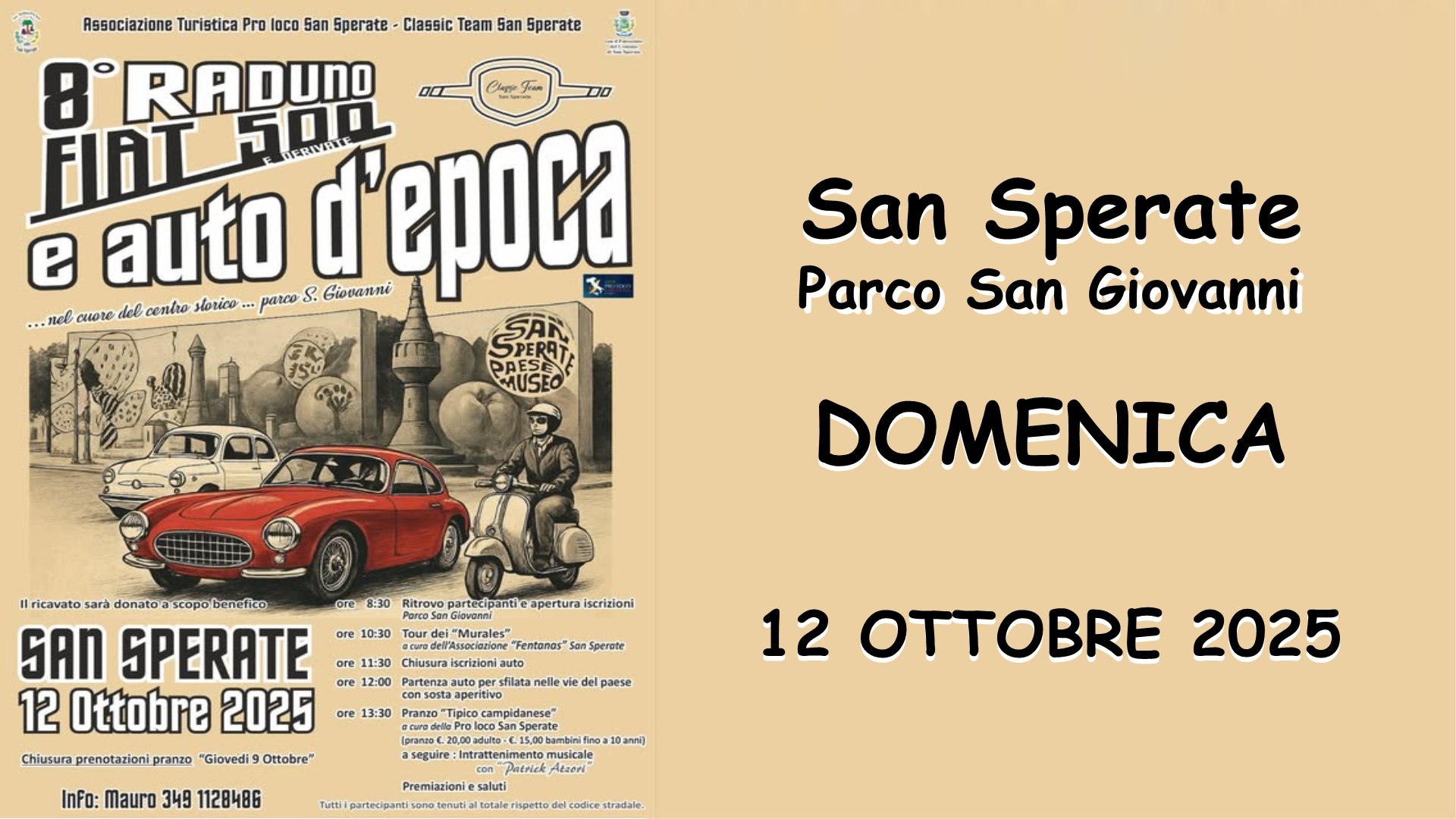 L’evento, organizzato dall’Associazione “Classic Team San Sperate” e dalla “Pro Loco”, con il Patrocinio del Comune di San Sperate, promette ancora una volta emozioni e divertimento per un pubblico di tutte le età.