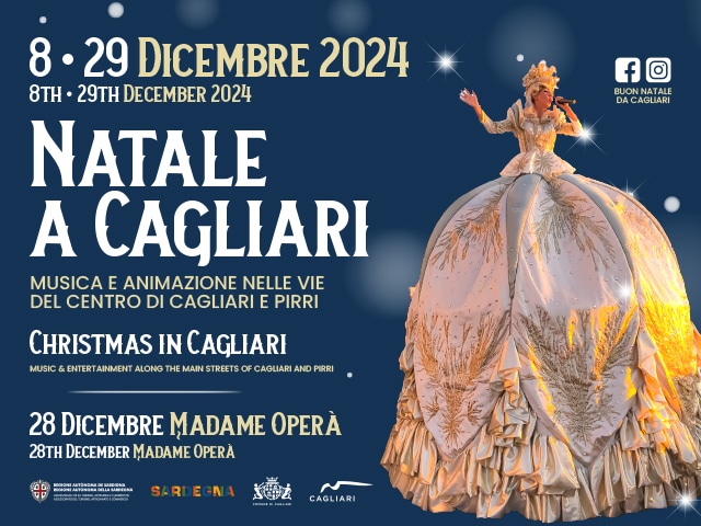 Il 28 dicembre, solo a Cagliari, l’imponente Madame Operà conquisterà il pubblico con uno spettacolo unico. Alta ben 3,7 metri, questa straordinaria figura barocca sfilerà per le vie della città con il suo maestoso abito luminoso, affascinando il pubblico con una voce lirica incantevole e un repertorio internazionale. Un’esperienza indimenticabile, perfetta per vivere la magia del Natale.