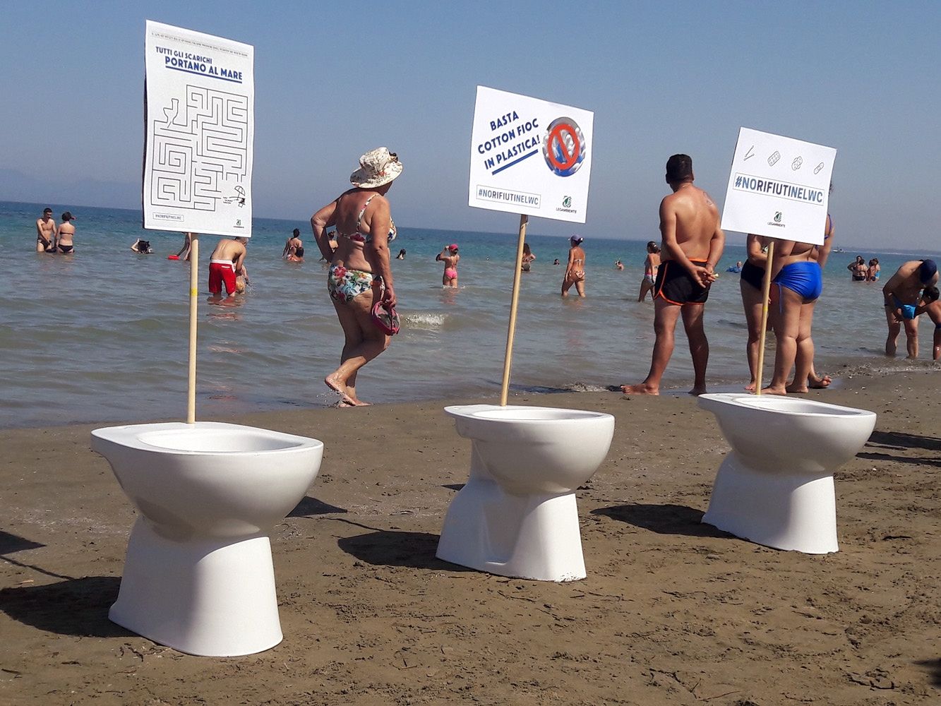 Qual è la distanza tra il nostro wc e il mare? Molto più che breve di quello che si immagina. Il 10% dei rifiuti presenti sulle spiagge italiane proviene, infatti, dagli scarichi dei nostri bagni. Rifiuti buttati nel wc che raggiungono il mare, anche a causa di sistemi di depurazione inefficienti, minacciando la fauna marina. Il 9% di questi rifiuti spiaggiati è costituito da bastoncini per la pulizia delle orecchie che vengono buttati nei Wc. In sole 46 spiagge lungo la penisola sono stati trovati quasi 7mila cotton fioc (monitorate da Legambiente tra il 2016 e il 2017 con l’indagine Beach Litter), in pratica due bastoncini per le orecchie ogni passo tra la sabbia. Il problema, purtroppo, non sono solo i cotton fioc. Sulle nostre spiagge c’è di tutto: blister, tamponi e assorbenti, medicazioni, deodoranti per wc, contenitori per le lenti a contato. Tutti rifiuti buttati nel WC e hanno raggiunto mare e spiagge, anche a causa di sistemi di depurazione inefficienti. Prevenire è possibile e anche molto semplice: basterebbe usare il cestino.