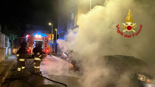 Notte di fuoco ad Assemini, due auto in sosta incendiate nel centro abitato. I Vigili del Fuoco evitano la propagazione delle fiamme ad altri veicoli in sosta e alle strutture adiacenti