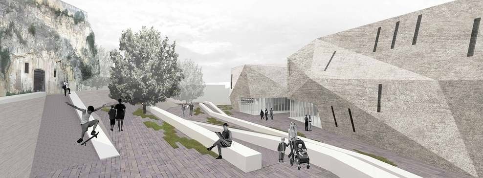 “Nel progetto è esplicito il rapporto col contesto – ha sottolineato Giovanni Battista Oliva – la sua geomorfologia, e la fisicità della rocca. Il risultato sono due edifici che appaiono completamente di pietra (due gemelli, ma diversi fra loro in aspetto e carattere), che contengono tutte le condizioni spaziali necessarie per rispondere alle esigenze espresse nel programma contenuto nel bando”.