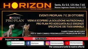 Horizon organizza, in collaborazione con Nestlè Purina, dueincredibili giornate promozionali dedicate ai nostri amici a 4 zampe. Nel mese di ottobre si terranno due eventi: il 7 e il 28 ottobre. Durantele giornate promozionali Purina Pro Plan, non mancheranno le promozioni speciali e i consigli personalizzati.
