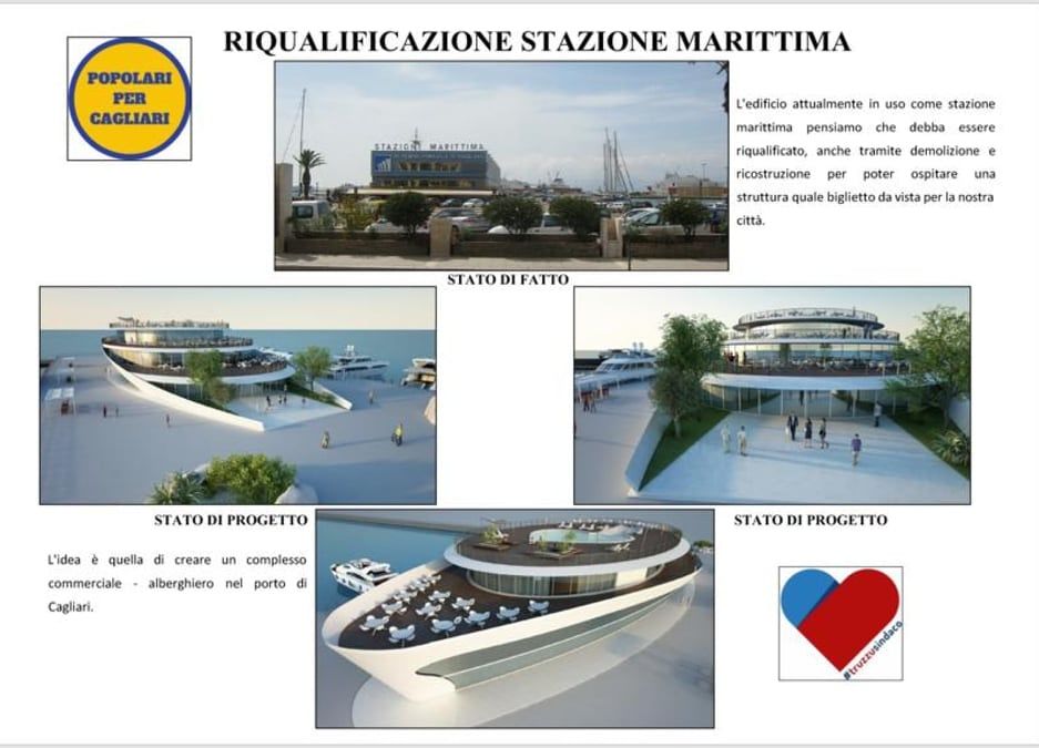 La vecchia Stazione Marittima? In futuro dovrà diventare “un edificio di elevata qualità architettonica con servizi per la nautica, pronto soccorso, uffici, bar, ristoranti e strutture ricettive”. Sul piatto c’è una proposta di “project financing” da 25 milioni di euro, come emerso già a novembre dell’anno scorso durante l’audizione in Comune dell’attuale presidente dell’Autorità portuale Massimo Deiana, dove erano state presentate tutta una serie di ipotesi sul porto del futuro. E adesso c’è anche un nuovo progetto, presentato dai Popolari per Cagliari, lista che sostiene la candidatura a sindaco di Paolo Truzzu (centrodestra). L’edificio che dovrà essere costruito sulle ceneri dell’ex stazione? “Dovrà essere a forma di prua di nave, sviluppato su due piani, con negozi rigorosamente tipici sardi e un boutique hotel”. A spiegare nei dettagli la proposta è il capolista Federico Ibba: “L’edificio dev’essere riqualificato, non è importante se con una demolizione o ricostruzione, l’importante è che diventi il biglietto da visita della nostra città”. Come? “Al piano terra ospiterà tanti negozietti come quelli della Marina, sarà una prosecuzione del centro commerciale naturale del rione portuale, quindi con prodotti in vendita rigorosamente tipici e della tradizione cagliaritana, più sale adatte ad ospitare congressi e riunioni”. Al primo piano, invece, “un boutique hotel con cinquanta stanze e un ristorante”.