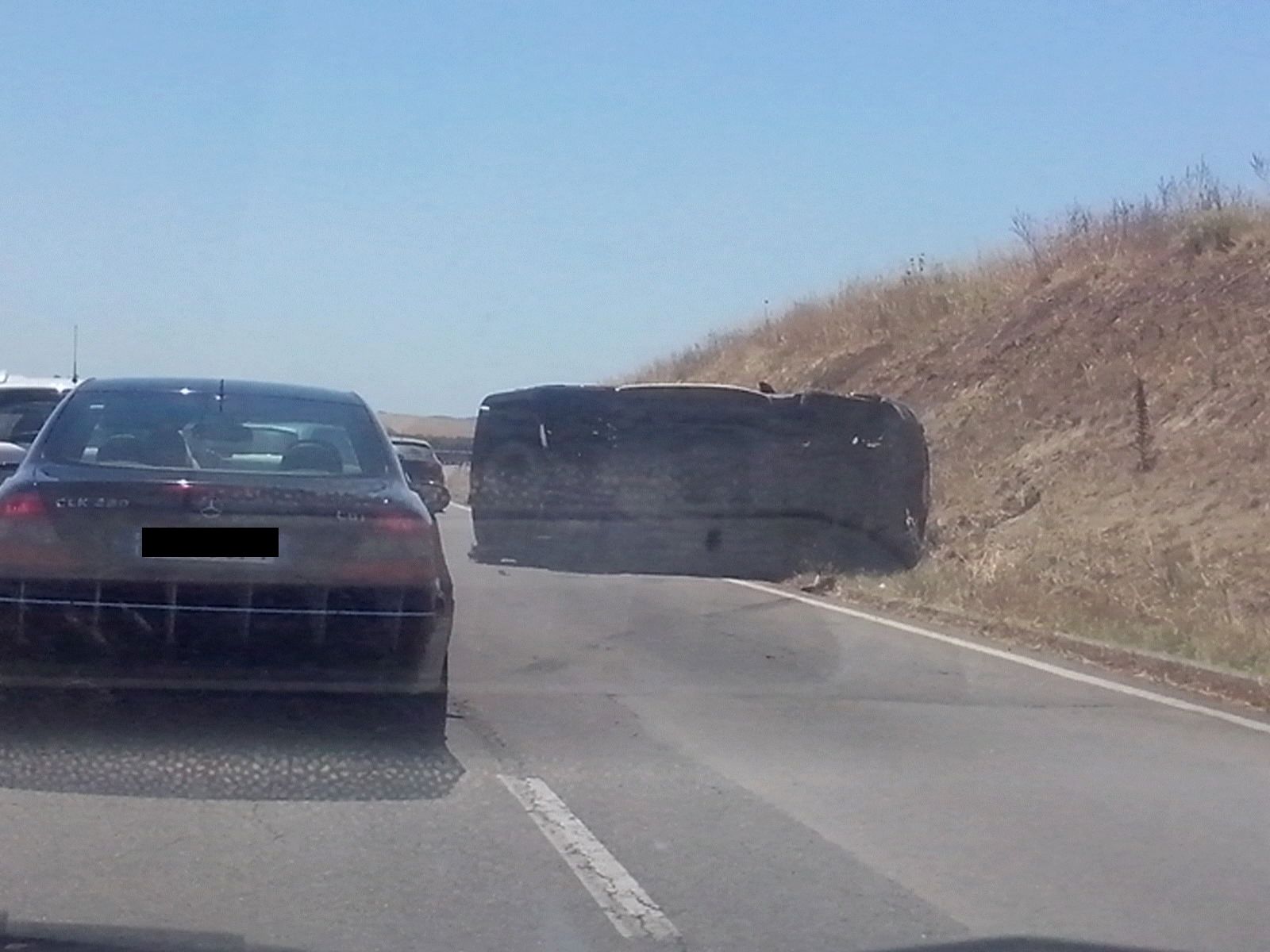 Due le vetture coinvolte, di cui una che si è ribaltata su un fianco.