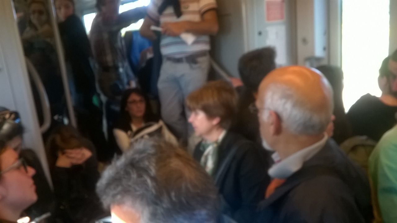 Passeggeri stipati come sardine sul treno Cagliari Sassari, partito dalla stazione di via Roma alle 16.25 di questo pomeriggio. Non una novità, ma la situazione che si presenta praticamente ogni giorni, di solito nei week end e a ridosso delle festività. Studenti, lavoratori e turisti costretti a viaggiare in piedi per ore.
