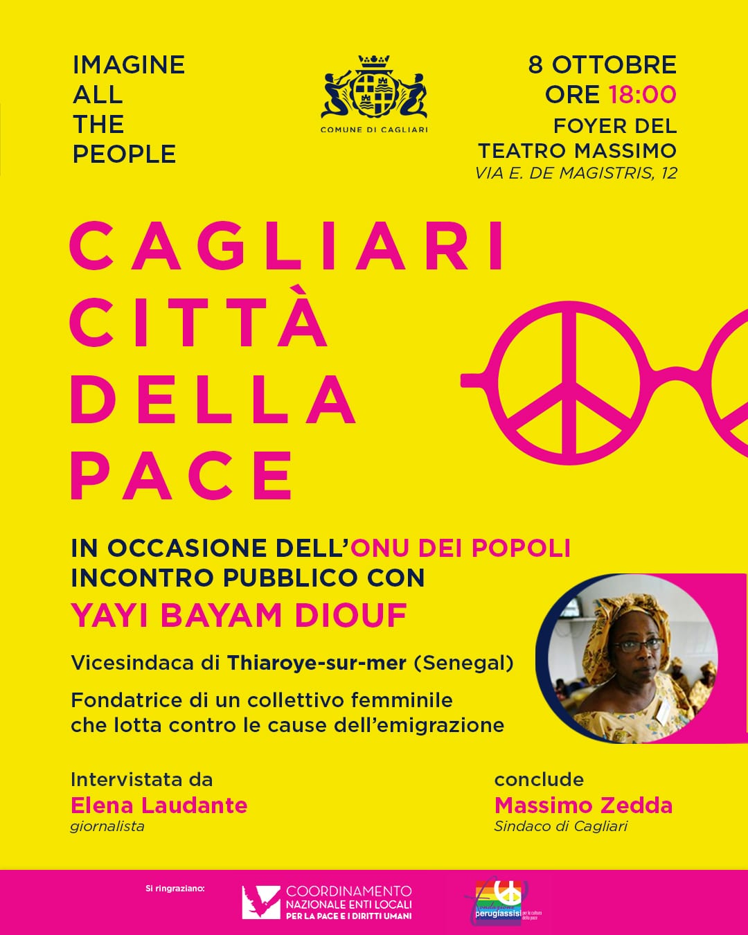 Nell’ambito delle iniziative in occasione dell’assemblea dell’Onu dei Popoli, in programma dal 6 al 12 ottobre, che si concluderà con la Marcia della Pace Perugia-Assisi, Cagliari ospita Yayi Bayam Diouf, vicesindaca della città senegalese di Thiaroye-sur-Mer.