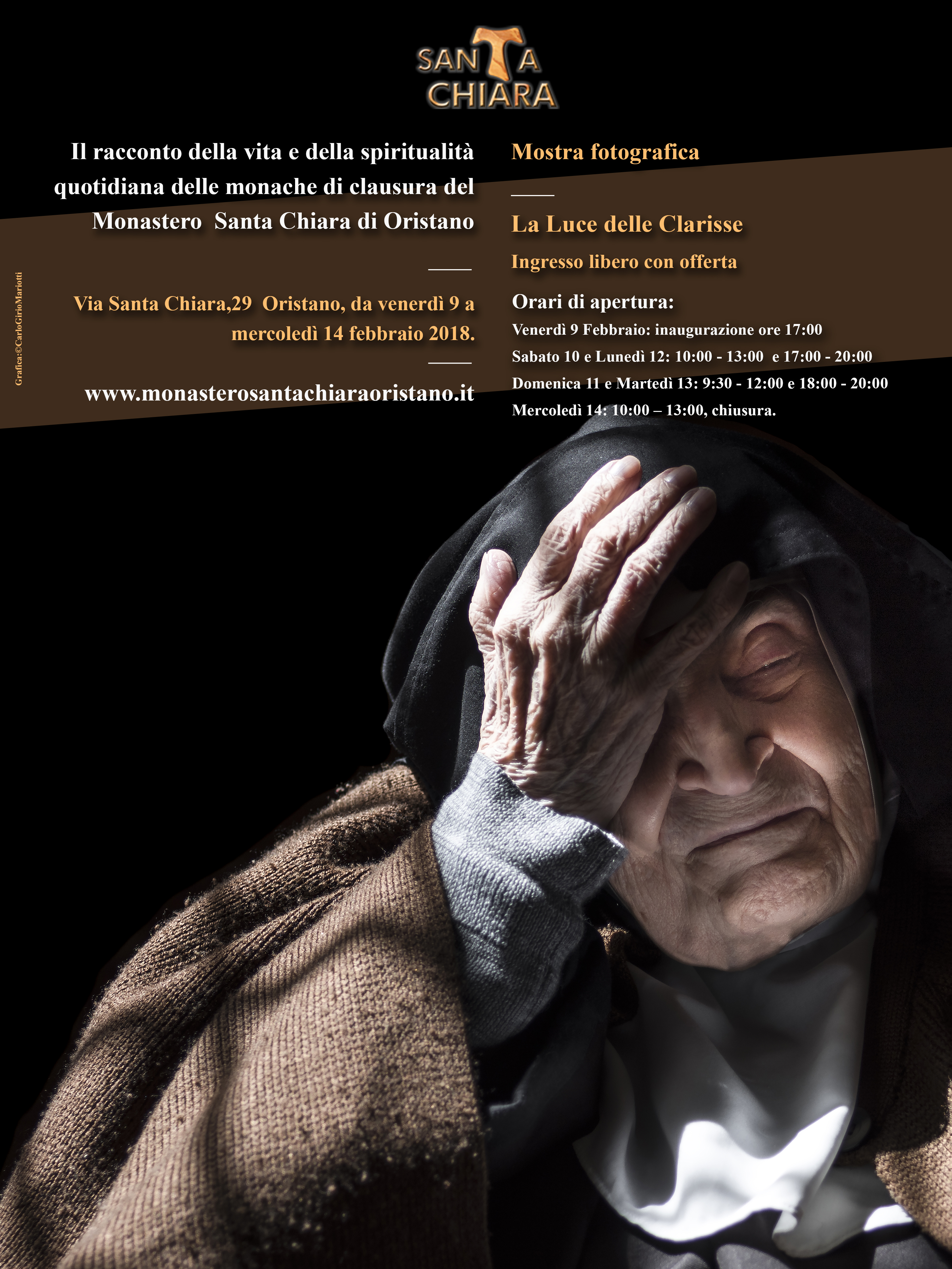 L’ingresso alla mostra è libero con offerta. Potranno essere acquistati il libro e le stampe delle foto come donazione al Monastero Santa Chiara di Oristano