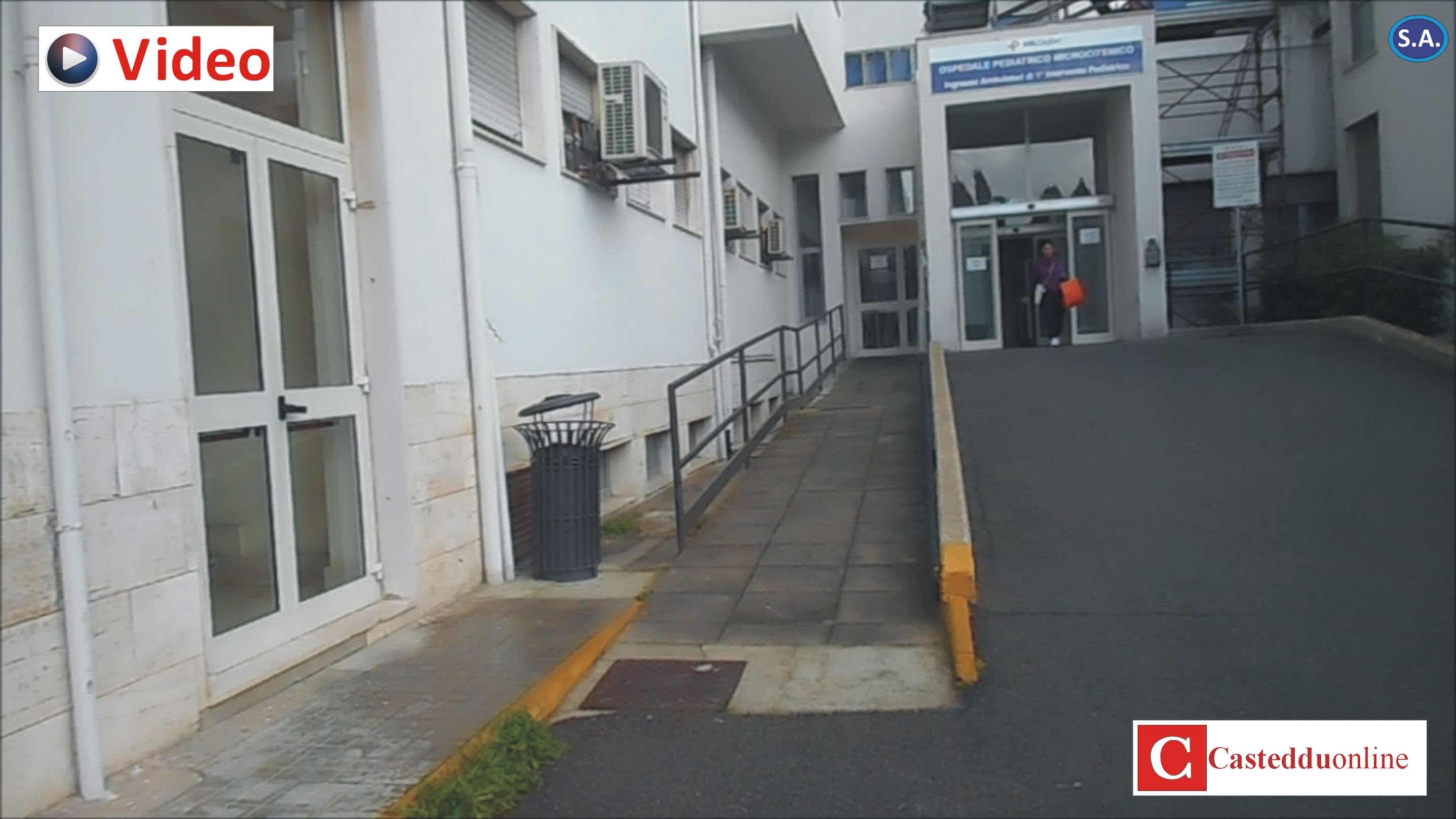All’ospedale Microcitemico A. Cao di Cagliari, la rampa disabili non è ubicata nell’ingresso principale ma è posta sul retro dell’edificio dove arrivano anche le ambulanze.