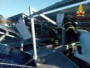 Intervento dei dei Vigili del Fuoco del comando provinciale di Cagliari dovuto al forte vento che continua ininterrottamente a soffiare con forti raffiche, sulla “Strada Statale 131 ” all’altezza del Km 15, in una struttura appartenente alla ditta Karalis per il crollo di pannelli solari, montati al di sopra dello stabile , che con le forti raffiche di vento si sono staccati dalla struttura di ferro che li sosteneva, cadendo sul solaio e il piazzale che si affaccia alla Strada Statale, dove fortunatamente al momento non stava transitando nessuno. Gli operatori stanno provvedendo a rimuovere parti pericolanti e a mettere in sicurezza la struttura.