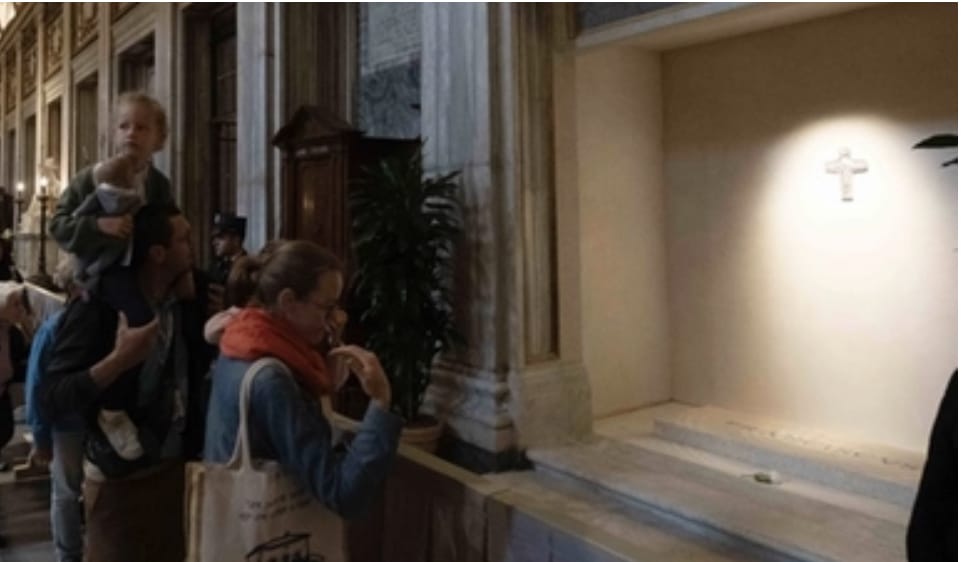Affetto, amore, devozione, commozione. Tantissimi i sentimenti che in queste ore stanno coinvolgendo i fedeli venuti a Roma da ogni parte d’Italia e del Mondo per l’ultimo abbraccio a Papa Francesco. Da questa mattina alle 7 è possibile visitare la tomba del Santo Padre a Santa Maria Maggiore. Semplicissima, in marmo proveniente dalla Liguria- la terra dei suoi nonni- ed una sola incisione: Franciscus. Fedele a se stesso fino alla fine, anche nella sepoltura. Accanto al nome, una rosa bianca, lasciata dai poveri che hanno accompagnato il feretro del Pontefice.