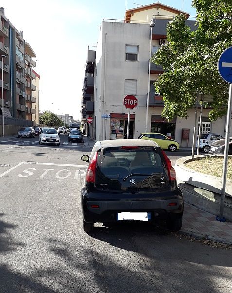 Parcheggi selvaggi a Quartu in via Olanda. Sembra non conoscere il codice della strada, tanto meno le regole basilari di civiltà, il proprietario di un’auto che ha parcheggiato tranquillamente in uno stop.