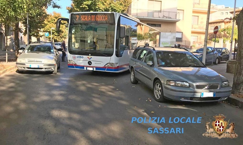 Il fatto si è verificato in viale San Francesco: alle 16,55 la centrale operativa del Comando di via Carlo Felice è stata contattata dalla Atp per segnalare l’impossibilità per un loro mezzo di proseguire la corsa a causa di due auto che impedivano all’autista di effettuare la svolta da via Mameli in direzione di viale san Francesco.