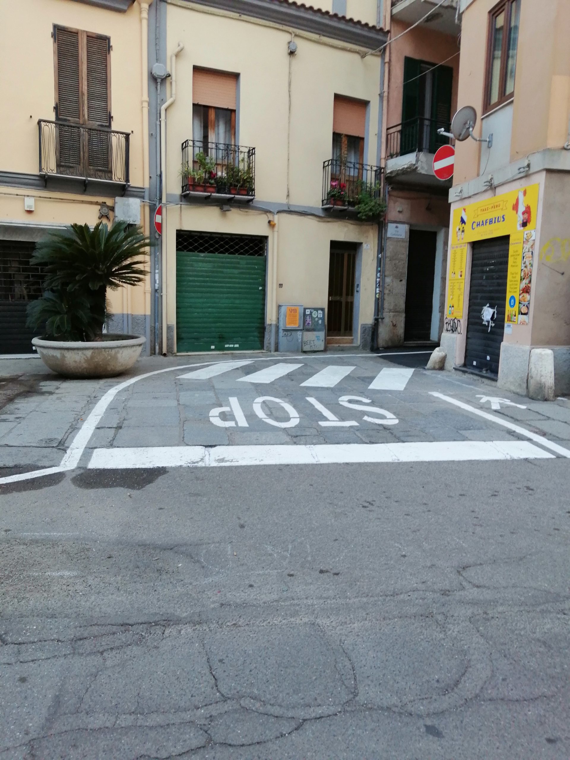 Non si sa chi abbia chiesto e chi abbia dato l’autorizzazione, sta di fatto che hanno realizzato uno STOP sul marciapiede in maniera non corretta secondo le norme del Codice della Strada , senza una preventiva disposizione regolamentare che non è dato rinvenire all’Albo Pretorio del Comune per doverosa informazione ai cittadini e agli utenti, ma dopo qualche giorno, non soddisfatti del “guazzabuglio” causato, hanno fatto venire sul posto una auto gru appositamente attrezzata per spostare la grande fioriera a poca distanza della parete delle case e proprio alla confluenza di una modesta striscia pedonale creando così ulteriori difficoltà al