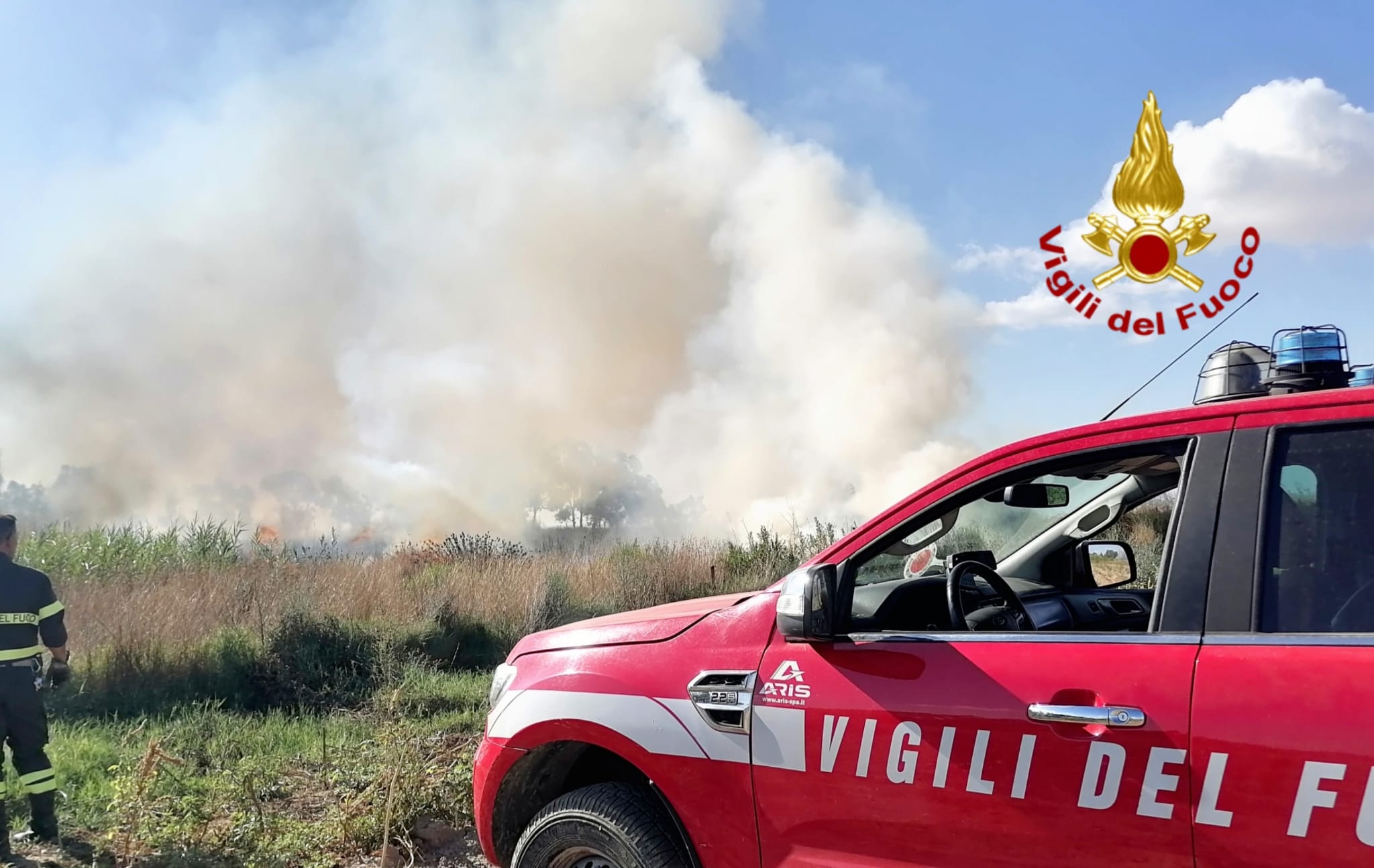 I Vigili del Fuoco sono sul posto con tre automezzi, le operazioni di spegnimento rese difficili a causa dell’area impervia e il terreno paludoso, gli operatori VVF sono schierati a protezione di alcune serre agricole e degli animali in alcuni terreni adiacenti.