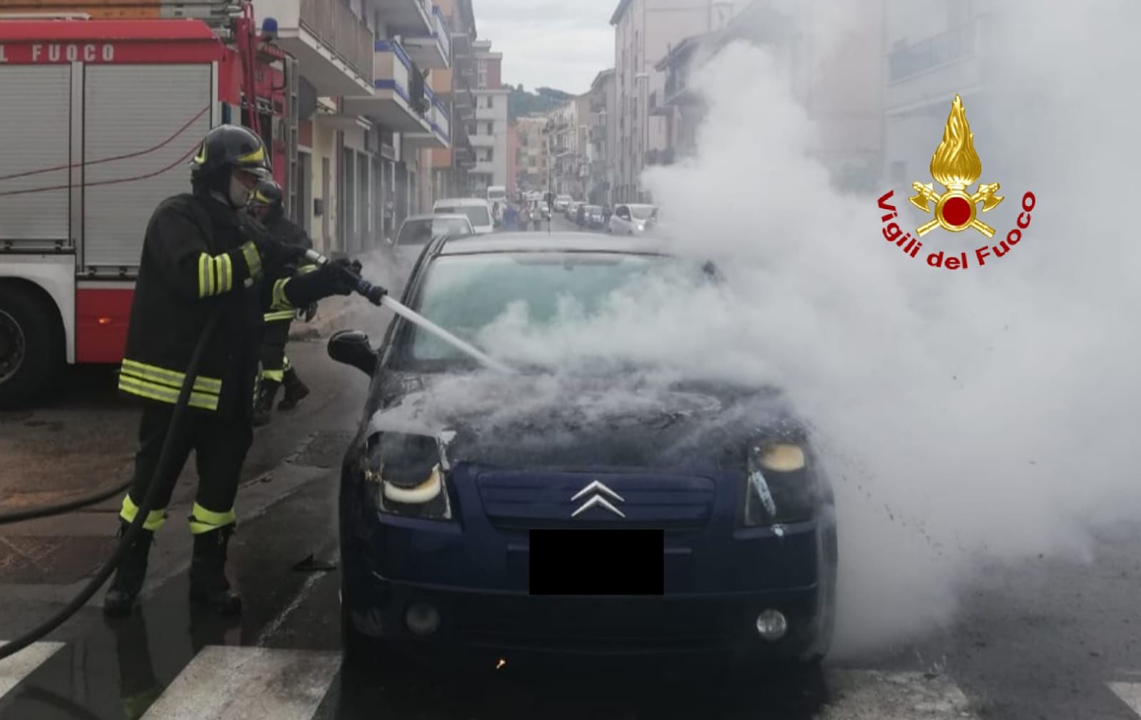 Gli operatori VVF all’arrivo sul posto hanno delimitato l’area e con un’APS hanno provveduto ad effettuare le operazioni spegnimento e di messa in sicurezza della sede stradale e dell’area circostante, evitando la propagazione delle fiamme all’intero veicolo.