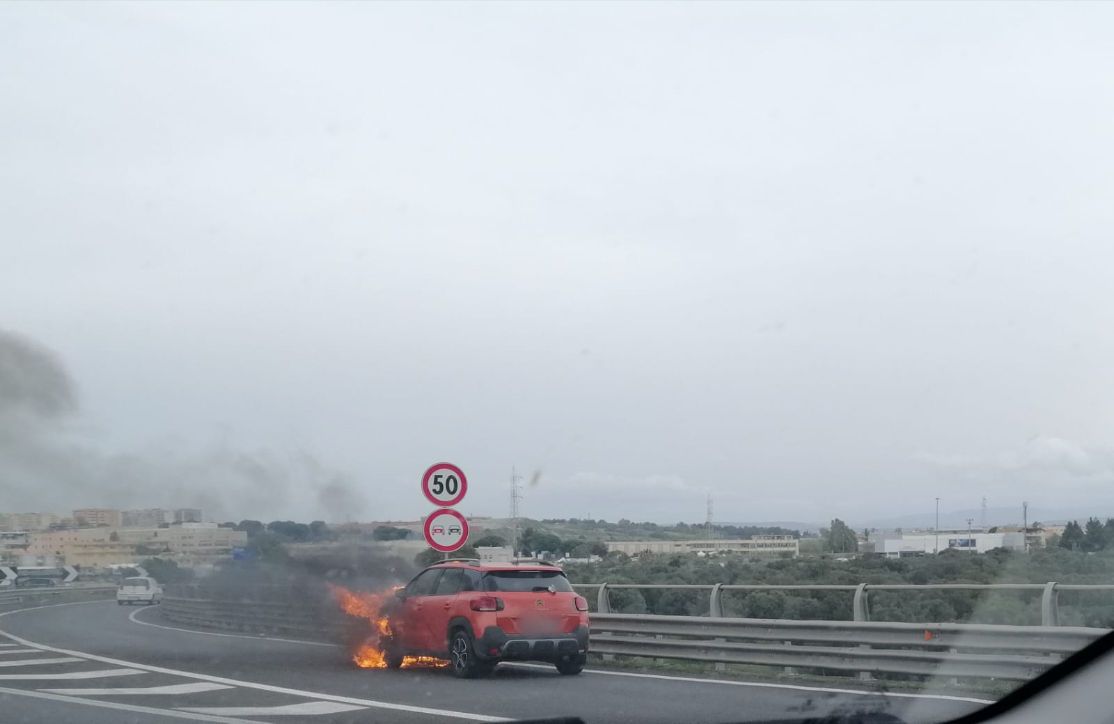 Paura sulla strada statale 131, all’altezza dello svincolo per Elmas e Sestu. Una Citroen rossa ha preso fuoco nella parte anteriore, e le fiamme sono già molto estese. A lanciare l’allarme al 115 numerosi automobilisti: in azione i Vigili del fuoco del comando provinciale di Cagliari. Al momento non si registrano feriti.