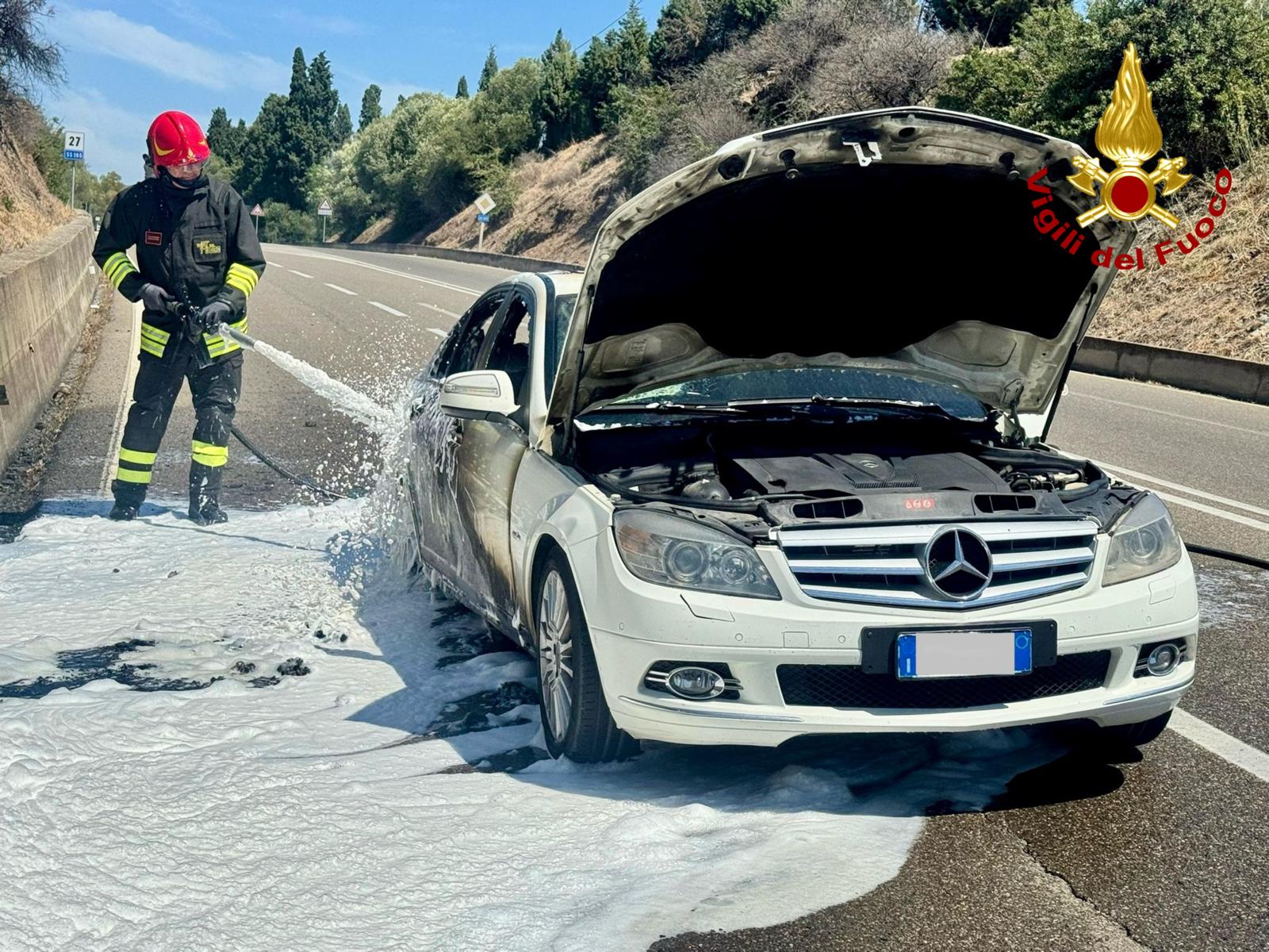 Intervento dei Vigili del fuoco di Cagliari, distaccamento stagionale di Pula, intorno alle 12 di questa mattina, per un incendio che ha coinvolto un’auto in marcia lungo la SS 195, in prossimità dell’ingresso del centro abitato.