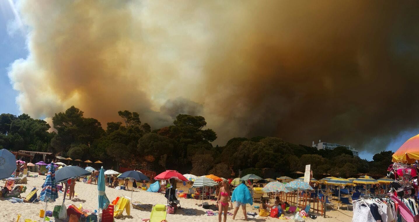 Un incendio pauroso, a due passi dalle case di Santa Margherita e dalle spiagge. Con bagnanti e turisti in fuga. Con le auto parcheggiate sulla statale 195 alla disperata, in cerca di rifugio mentre il fuoco altissimo terrorizza una intera costa. Sul posto i vigili del fuoco: le fiamme, partite nel primo pomeriggio all’altezza di Capo Blu, si sono poi estese nella zona dell’Abamar e verso la Perla Marina. Stando alle prime testimonianze l’incendio è stato appiccato poco dopo il Forte Village, al km 39 della Sulcitana. In questo momento Polizia e volontari stanno facendo sgomberare la pineta di Santa Margherita dalle auto, sono momenti di grandissima tensione e paura. La foto che vedete, impressionante, è stata scattata dalla nostra lettrice Veronica Muggironi. Polemiche anche per i soccorsi, secondo molti bagnanti l’elicottero è arrivato dopo quasi un’ora. Vigili del fuoco in azione per spegnere il rogo, che è con ogni probabilità doloso.