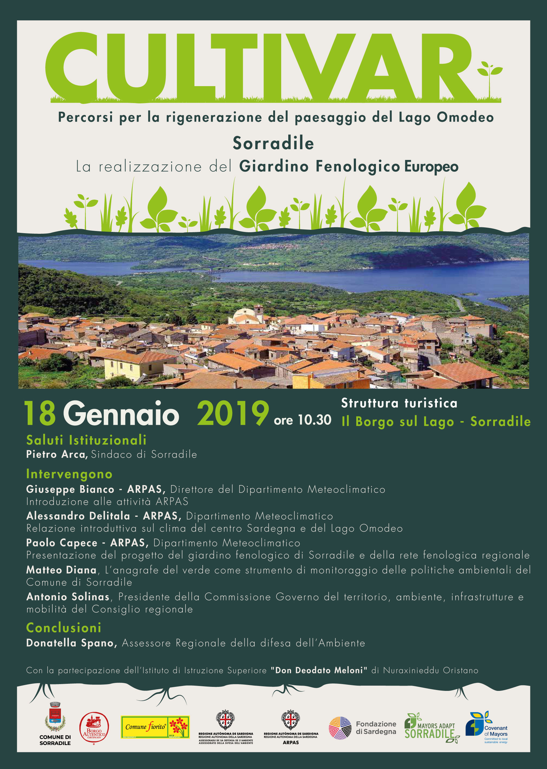Il Comune di Sorradile, nell’ambito delle politiche di sostenibilità ambientale e tutela del territorio e in collaborazione con ARPAS – Agenzia Regionale per la Protezione dell’Ambiente della Sardegna, porta avanti il progetto CULTIVAR, finalizzato alla realizzazione di un Giardino Fenologico Europeo sulla sponda del lago Omodeo e alla costruzione di percorsi di valorizzazione ambientale delle aree attorno al lago stesso.