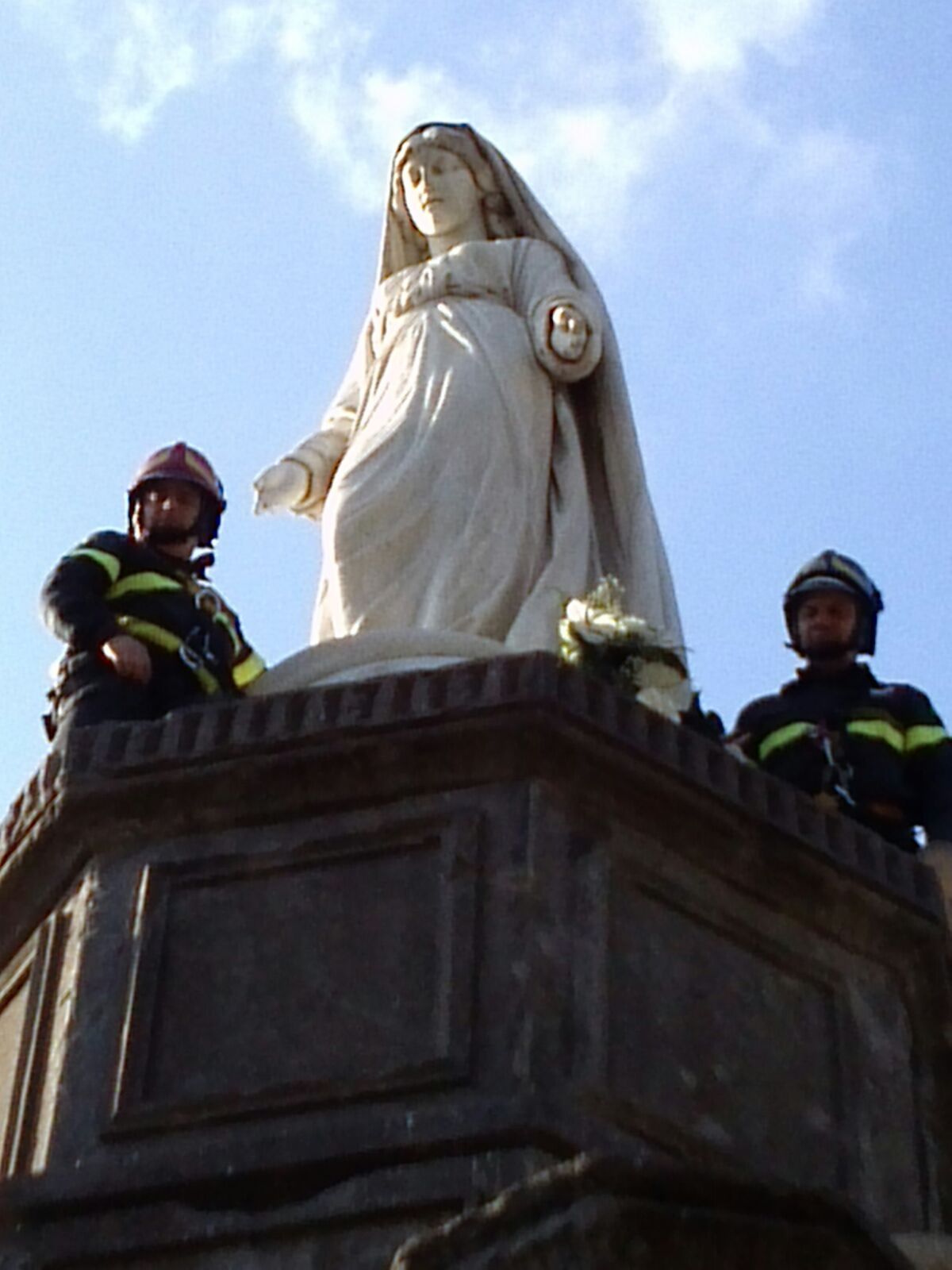 Ogni anno i vigili del fuoco depositano una corona presso la statua della Madonna in piazza del Carmine.