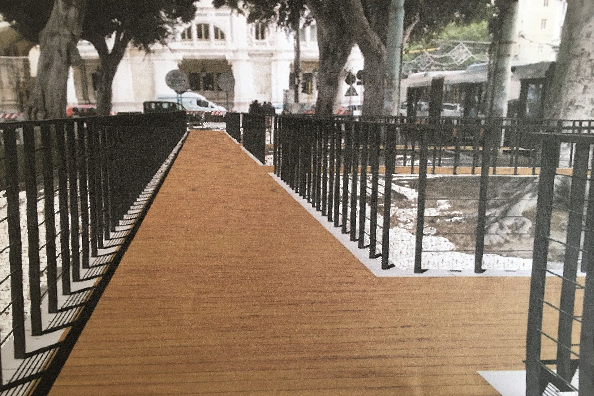 Gli interventi consistono nella realizzazione di: passerelle pedonali complete di parapetti, protezione delle aree sconnesse con ghiaia, sistema di illuminazione a terra dei percorsi.