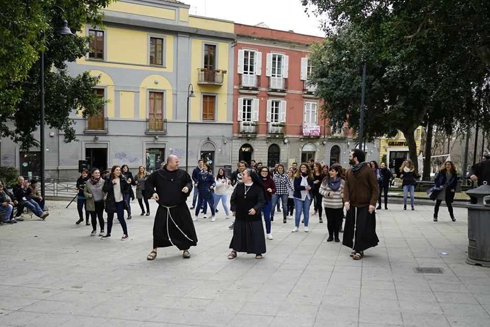 Bellissima iniziativa ieri sera in piazza Yenne, organizzata dai Frati Minori del convento di San Mauro, a Cagliari. Un flashmob nel cuore del centro storico sulle note delle più note canzoni pop, che ha coinvolto davvero tutti.