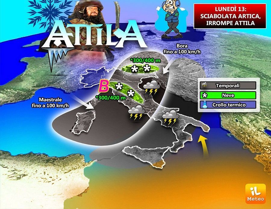 “Attila”, una bassa pressione di origine scandinava, con la sua aria artica si sta dirigendo verso la Penisola, dove i suoi effetti inizieranno a farsi sentire dalla serata di domenica.