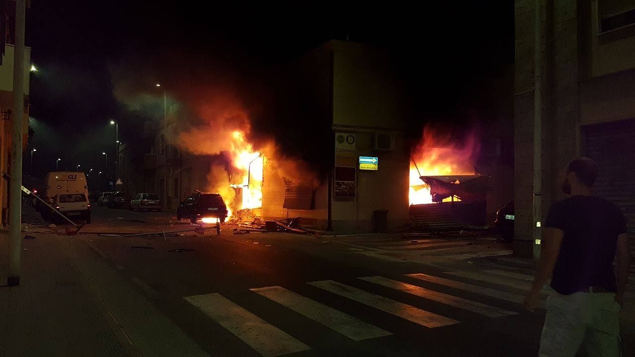 Le detonazioni si sono sentite a Pirri anche a un chilometro di distanza e hanno tenuto svegli a lungo gli abitanti. Tanti anche i curiosi accorsi sul posto, in via Toti, dove i vigili del fuoco hanno poi domato l’incendio dopo momenti di grande paura. Il bar è andato distrutto e anche un’auto parcheggiata nelle vicinanze è stata seriamente danneggiata. Guardate il VIDEO