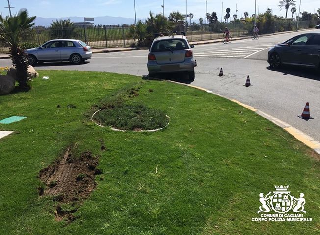 Incidente stradale questa mattina verso le 10.00 al Poetto. Una Yaris guidata da un 27enne che percorreva la via Lungosaline in direzione di Quartu, arrivata all’altezza della rotatoria di via Isola di San Pietro salineè andata finendo sopra la rotonda al centro dell’aiuola. La Polizia Municipale intervenuta immediatamente sul posto per i rilievi di legge, ha sottoposto il conducente ad accertamento con etilometro dal quale emergeva un tasso alcolemico superiore al consentito. La patente di guida del 27enne veniva immediatamente ritirata e lo stesso denunciato all’autorità giudiziaria. Nessun danno a persone ma sono danni materiali alla rotonda ed al veicolo. (foto Polizia Municipale)