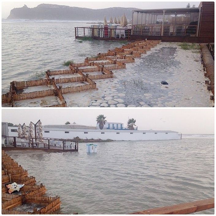 Ecco le foto di questa mattina scattate dal nostro lettore, Sergio Mallei. La spiaggia del Poetto, nei pressi del Twist, quarta fermata, totalmente sommersa dall’acqua, una mareggiata dovuta anche al forte vento che ha soffiato stanotte. Le paratie in legno hanno potuto fare ben poco, una cartolina di ottobre che in se racchiude anche un po’ di palese amarezza.