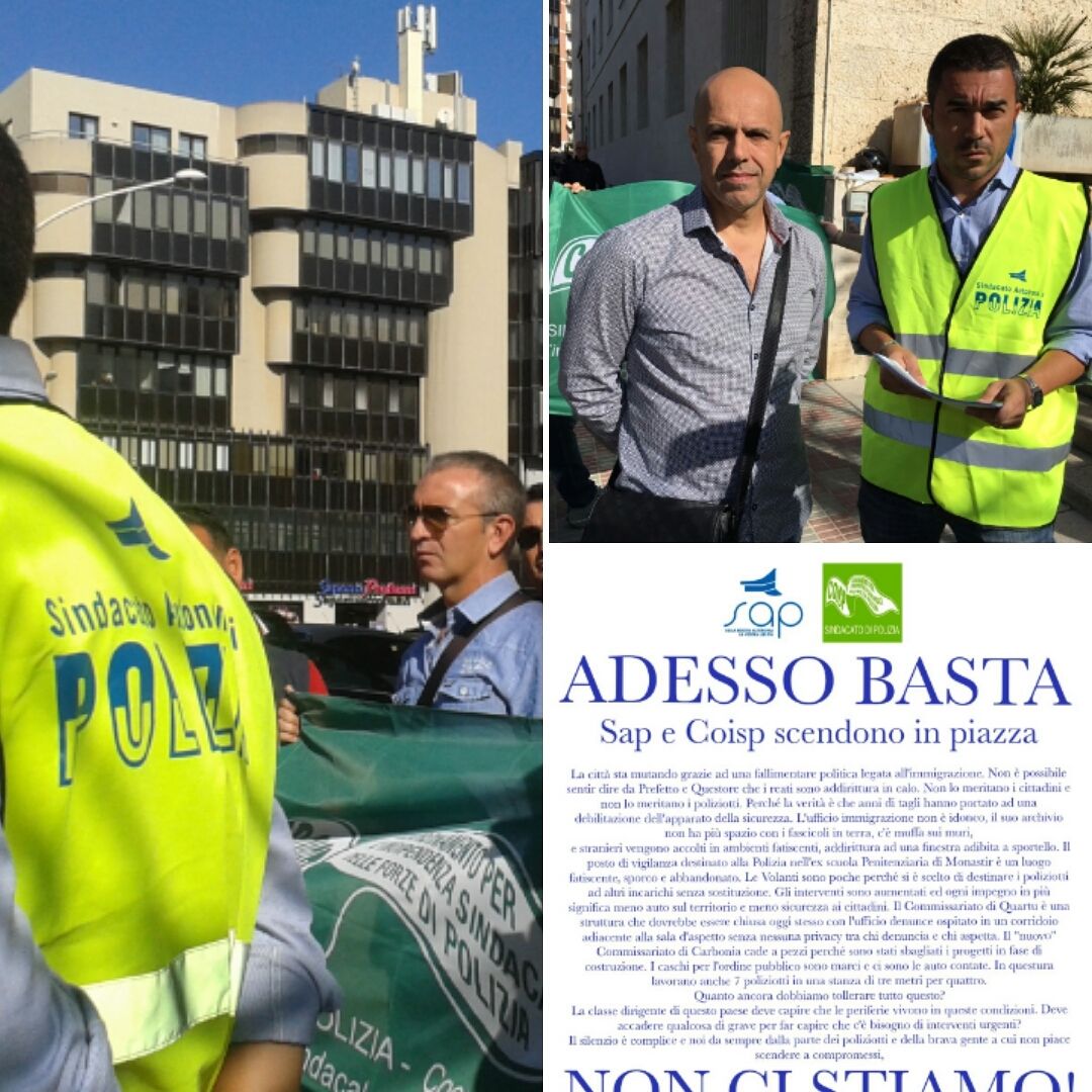 Adesso basta. I sindacati di Polizia Sap e Coisp scendono in piazza, più precisamente davanti alla Questura di Cagliari con un sit in congiunto e con un elenco di “cose” (un decalogo di argomenti, stilati in un volantino) che non vanno bene: “La città sta mutando per via di una fallimentare politica legata all’immigrazione – affermano indignati Luca Agati, Sap e Giuseppe Pilichi, Coisp – non è possibile sentir dire da Prefetto e Questore che i reati sono addirittura in calo. Non lo meritano i cittadini e non lo meritano i poliziotti. Perché la verità è che anni di tagli hanno portato ad una debilitazione dell’apparato della sicurezza – proseguono i due sindacalisti – l’ufficio immigrazione non è idoneo, il suo archivio non ha più spazio con i fascicoli in terra, c’è muffa sui muri, gli stranieri vengono accolti in ambienti fatiscenti, addirittura ad una finestra adibita a sportello. Il posto di vigilanza destinato alla Polizia nell’ex scuola Penitenziaria di Monastir è un luogo fatiscente, sporco e abbandonato. Le Volanti sono poche perché si è scelto di destinare i poliziotti ad altri incarichi senza sostituzione. Gli interventi sono aumentati ed ogni impegno in più significa meno auto sul territorio e meno sicurezza ai cittadini. Il Commissariato di Quartu è una struttura che dovrebbe essere chiusa oggi stesso con l’ufficio denunce ospitato in un corridoio adiacente alla sala d’aspetto senza nessuna privacy tra chi denuncia e chi aspetta. Il “nuovo” Commissariato di Carbonia cade a pezzi perché sono stati sbagliati i progetti in fase di costruzione. I caschi per l’ordine pubblico sono marci e ci sono le auto contate. In questura lavorano anche 7 poliziotti in una stanza di tre metri per quattro. Quanto ancora dobbiamo tollerare tutto questo? La classe dirigente di questo paese deve capire che le periferie vivono in queste condizioni. Deve accadere qualcosa di grave per far capire che c’è bisogno di interventi urgenti? Il silenzio è complice – concludono Agati e Pilichi – e noi da sempre dalla parte dei poliziotti e della brava gente a cui non piace scendere a compromessi, non ci stiamo”.