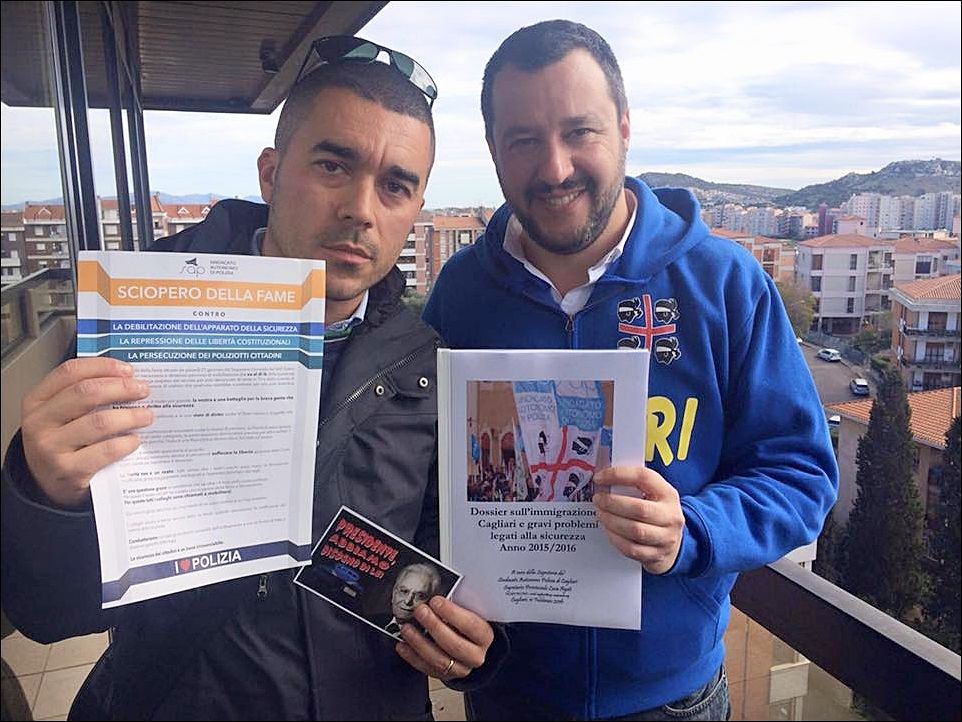 Questa mattina il segretario Sap di Cagliari, Luca Agati, ha incontrato il segretario della Lega Matteo Salvini ed il deputato Nicola Molteni, consegnando loro un dossier relativo alle problematiche sull’immigrazione e la sicurezza in città. Come già in altre occasioni, l’eurodeputato ha espresso solidarietà ed appoggio alle battaglie del Sap, (Sindacato Autonomo di Polizia), su tutte lo sciopero della fame del Segretario generale, Gianni Tonelli che prosegue l’iniziativa di protesta da ben ventidue giorni. È stata una ottima occasione per far arrivare a Roma le problematiche che colpiscono la nostra città e le gravi difficoltà e le mancanze che i poliziotti devono fronteggiare ogni giorno. A tal proposito, evidenzia Luca Agati, esprimiamo a tutti i colleghi impegnati oggi nei delicati servizi di ordine pubblico e coloro interessati direttamente negli scontri di stamane, piena vicinanza e solidarietà. Nonostante le difficoltà siamo sempre lì a garantire la sicurezza di tutti i cittadini.