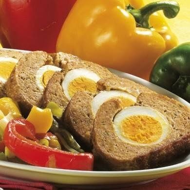 Mettete sulla carne le fette di mortadella e poi, al centro, le uova sode sgusciate. Poi, ricoprite le uova con i lembi delle fette di mortadella e infine con la carne.