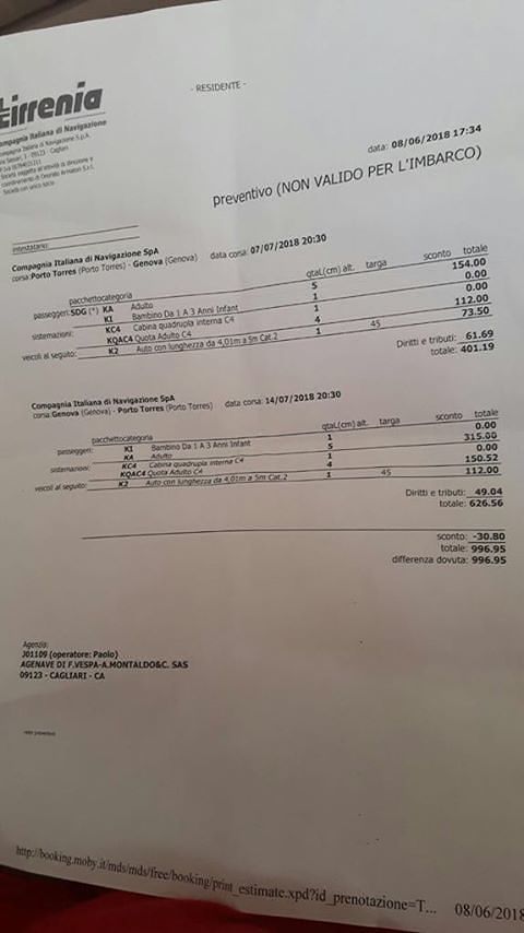 Buongiorno volevo capire dov’è la continuità territoriale per noi residenti, visto che ho fatto un preventivo per la mia famiglia, Porto Torres Genova euro 996.95..e mi è stato detto che c’è lo sconto residenti e sconto donne…. Quando ho visto il preventivo nn credevo ai miei occhi, incredibile… PRESIDENTE PIGLIARU fate qualcosa…