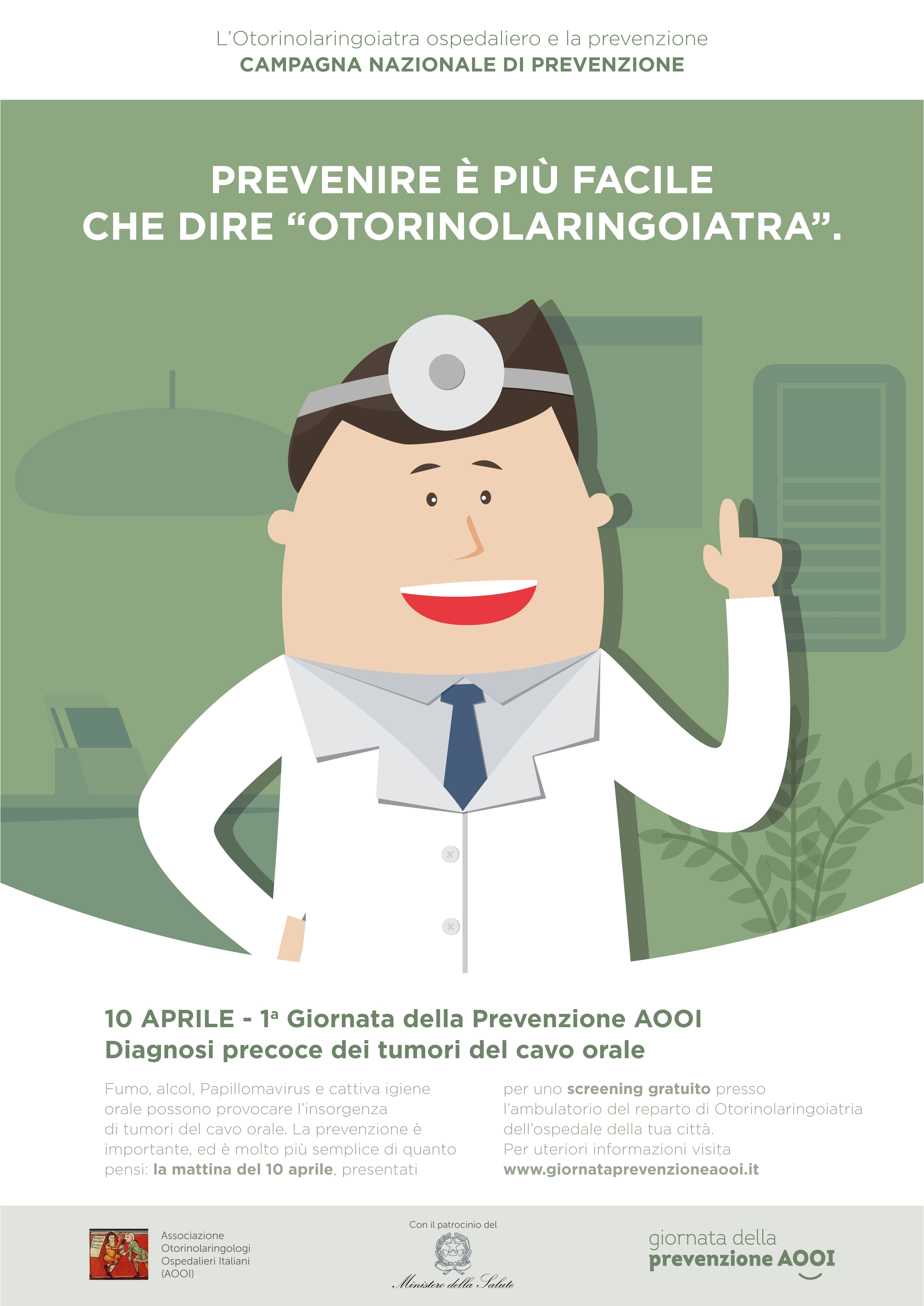 Scegli la salute: prevenire è più facile che dire “otorinolaringoiatria”! Lo sanno bene gli specialisti AOOI – Associazione Otorinolaringologi Ospedalieri Italiani che per il prossimo 10 aprile hanno organizzato, con il patrocinio del Ministero della Salute, la 1° Giornata della prevenzione AOOI dedicata alla diagnosi precoce dei tumori del cavo orale.