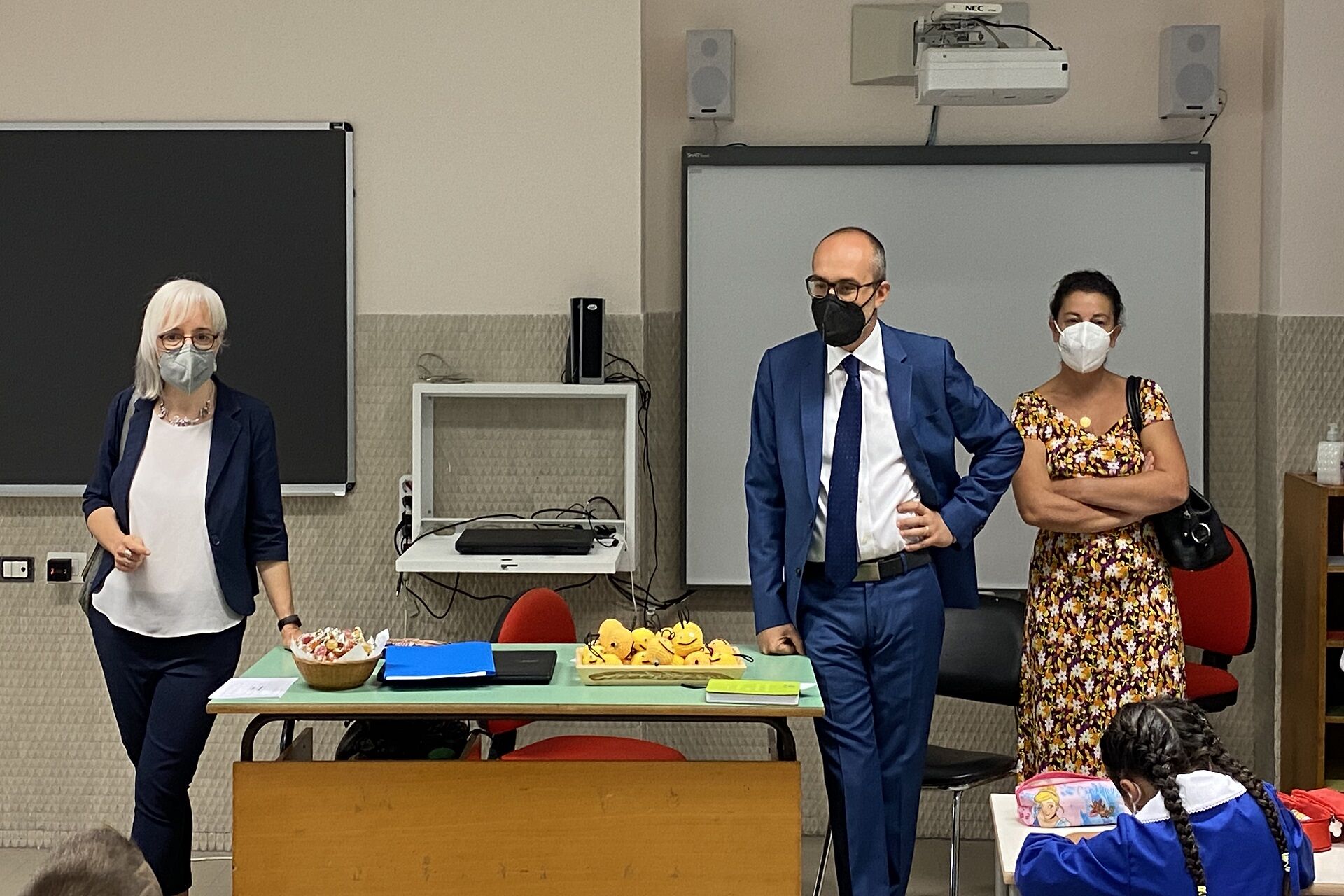 Nella mattina di oggi, martedì 14 settembre 2021, il primo cittadino di Cagliari ha raggiunto, insieme all’Assessora alla Pubblica Istruzione, Rita Dedola, via Meilogu e ha voluto visitare tutte e cinque le classi, dalla 1^ alla 5^ A, scambiando qualche parola con insegnanti e bambini.