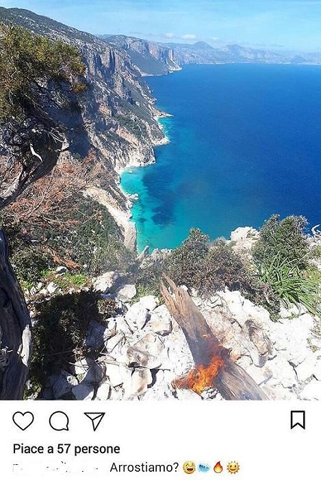 Un panorama mozzafiato nel Supramonte di Baunei, sulla rocca di Punta Salinas. Un balcone privilegiato sul golfo di Orosei: di fronte le acque turchesi tolgono il fiato, le rocce calcaree incantano, la macchia mediterranea inebria l’aria. Ma c’è un però. Un neo, sulla foto pubblicata su Instagram da una turista: un pezzo di legno e un fuocherello nel terrazzino panoramico. L’immagine non è sfuggita agli occhi degli attentissimi amministratori baunesi. E non è andata proprio giù. Il primo cittadino, Salvatore Corrias, dal proprio profilo facebook e sulla pagina social dell’ente ha pubblicato un post bacchettando la turista che, a commento della foto, scriveva: “Arrostiamo?”.