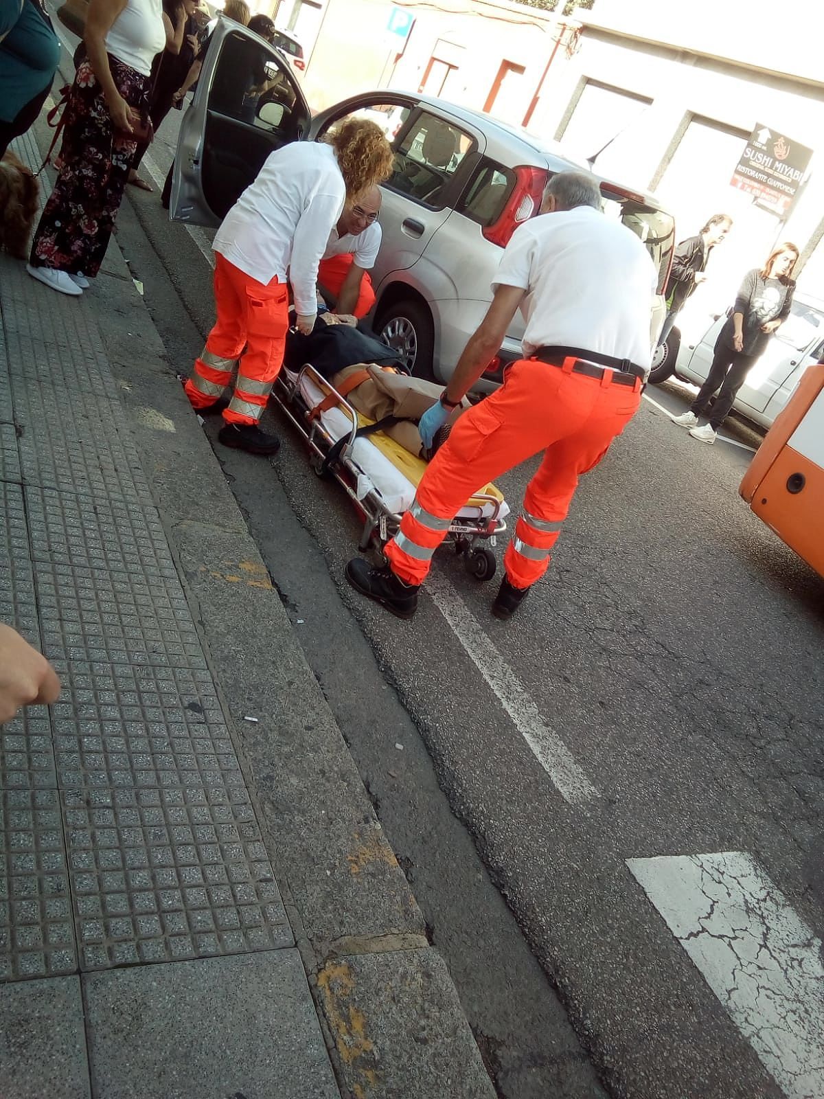 E’ accaduto in prossimità delle strisce pedonali situate in una curva all’angolo di via Dante. La conducente ha raccontato di averla appena sfiorata, ma la donna ha perso l’equilibrio e ha battuto la testa sul marciapiede, perdendo parecchio sangue.