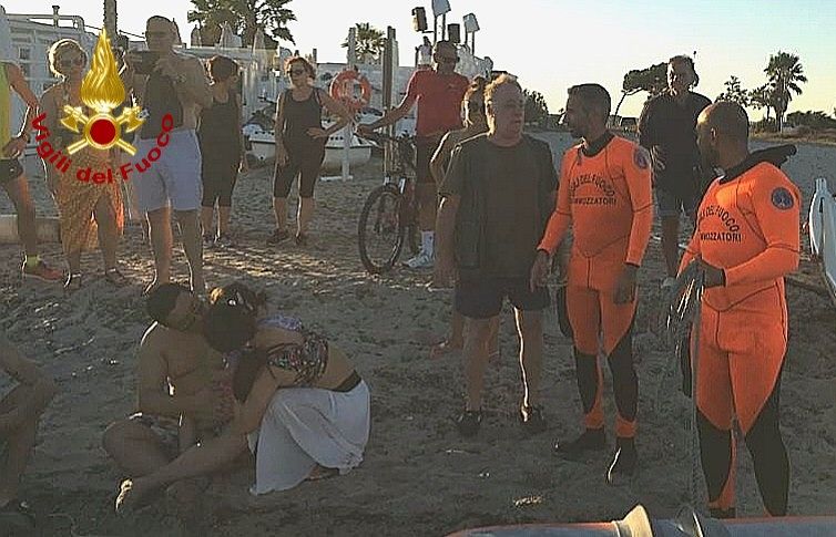 Quartu Sant’Elena, i sommozzatori dei vigili del Fuoco salvano una bambina di tre anni e un bagnino in difficoltà ad un miglio dalla costa.