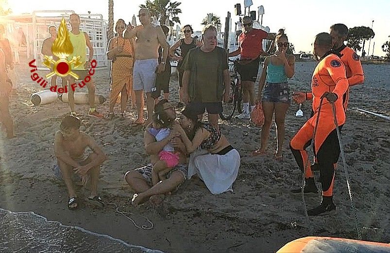 I due sono stati recuperati e riportati in riva. La bambina è stata affidata sana e salva ai genitori che, disperati, attendevano nella spiaggia.
