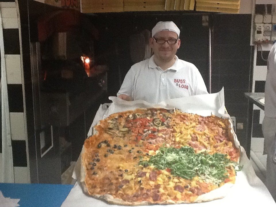 Racconta il titolare Daniele: “La pizza suprema è nata ad agosto 2001, grazie ad un forno speciale che ha un piano di cottura di 1,40 mt. L’idea mi è venuta guardando un programma su Dmax dove il protagonista doveva mangiare una pizza gigante, ho pensato di riproporlo in salsa italiana. Devo dire che ha riscosso un enorme successo, non me lo aspettavo, la foto della nostra super suprema ha avuto oltre 2mila condivisioni! La gente mi chiama per farmi i complimenti, è stata davvero una sorpresa per me”.