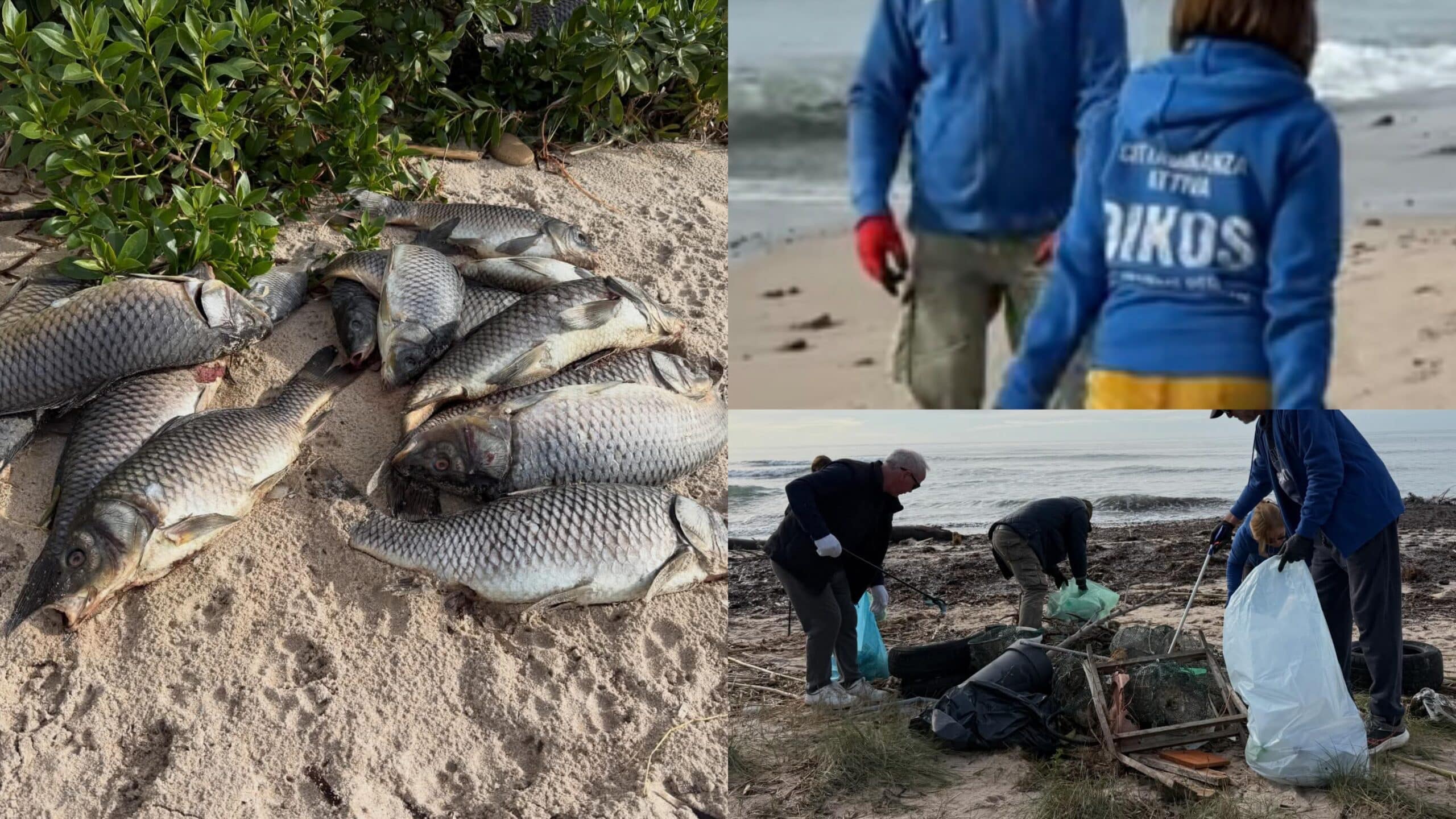 La scoperta più triste per i volontari “è stata quella dei pesci: carpe giganti e bellissime, trascinate dal fiume e poi dal mare fino alla spiaggia, purtroppo tutte morte. Diventeranno la merenda di qualche gabbiano o cornacchia”.