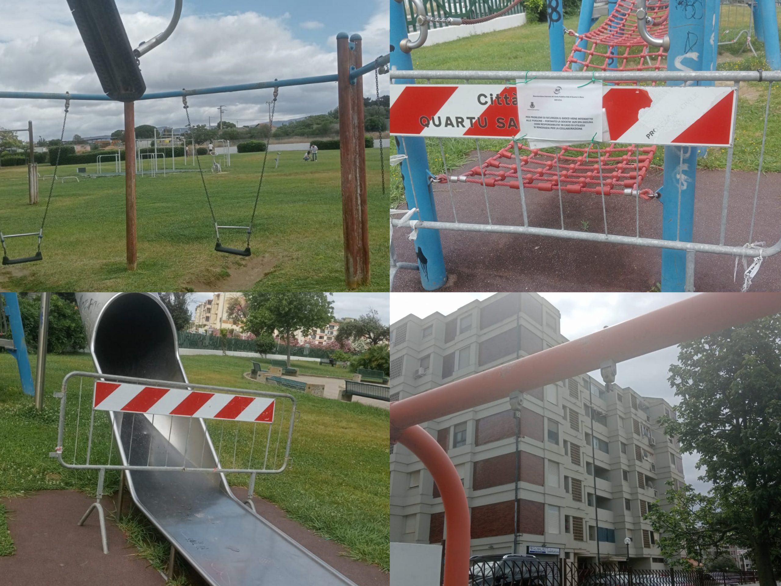 È l’unico parco pubblico di un intero rione, quello di via Germania a Pitz’e Serra, a Quartu, ed è totalmente in mano ai vandali. Sono tanti i post pubblicati su Facebook ai quali si aggiunge una dettagliata email, con tanto di foto, spedita alla nostra redazione da Maria Grazia Setzu: “Cani liberi senza guinzaglio, padroni che portano anche con il parco chiuso i loro animali a fare i loro bisogni e nn raccolgono niente, ragazzi che scavalcano la notte e vandalizzano il parco”, racconta la donna. “Nelle altalene a cerchio due sono state divelte e una ha il seggiolino spaccato. Il cesto per dondolare è sfondato con il fil di ferro a vista, pericoloso in quanto arrugginito, un altro dondolo alto a due posti ha il sedile spaccato, lo scivolo alto è chiuso con transenne in quanto le lamiere sono dissaldate ed è pericoloso, è così da mesi e i ragazzi ci passano le serate sopra, le altalene all ingresso lato Chiesa dovrebbero essere quattro e sono solo due piccole con seggiolino per piccoli perché le altre sono state staccate”.