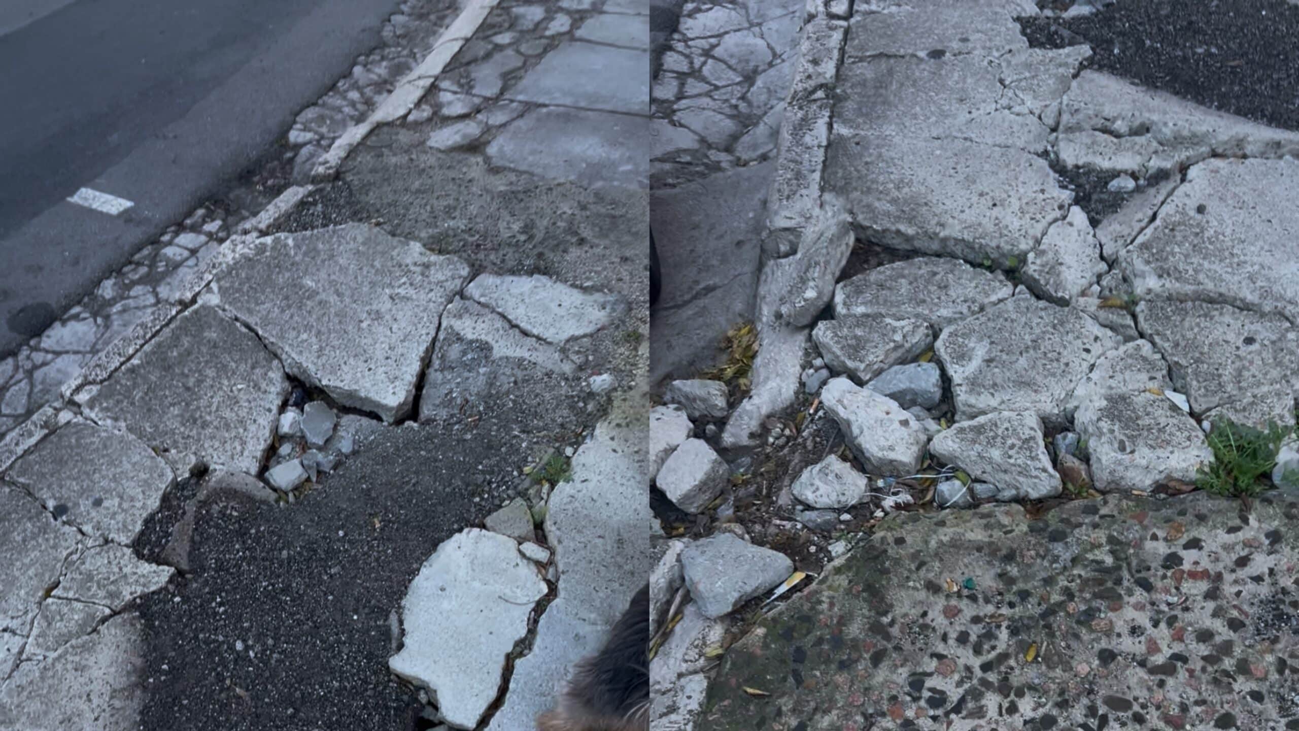 Le immagini lasciano poco spazio all’immaginazione, un percorso a ostacoli per residenti e avventori che percorrono il tratto in questione. “L’intera via presenta il marciapiede in queste condizioni.