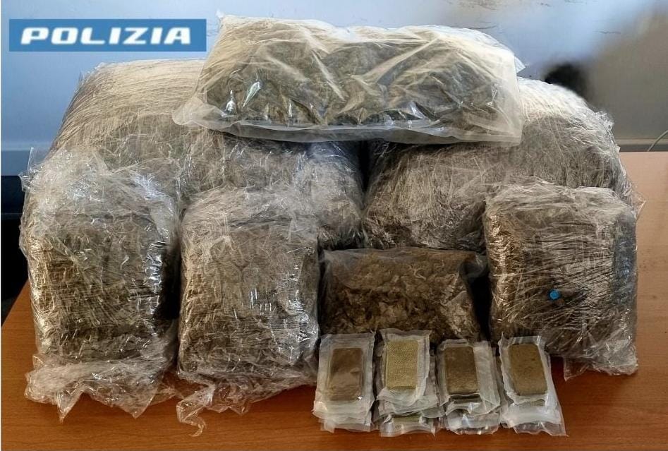 Nel locale gli agenti hanno rinvenuto diversi voluminosi involucri in cellophane contenenti marijuana essiccata, insieme a 21 panetti della stessa sostanza, già lavorati e messi sottovuoto, per un peso totale di oltre 12 chilogrammi e mezzo.