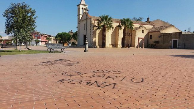 “Quartu regna”, così gli incivili imbrattano la piazza di Santa Greca