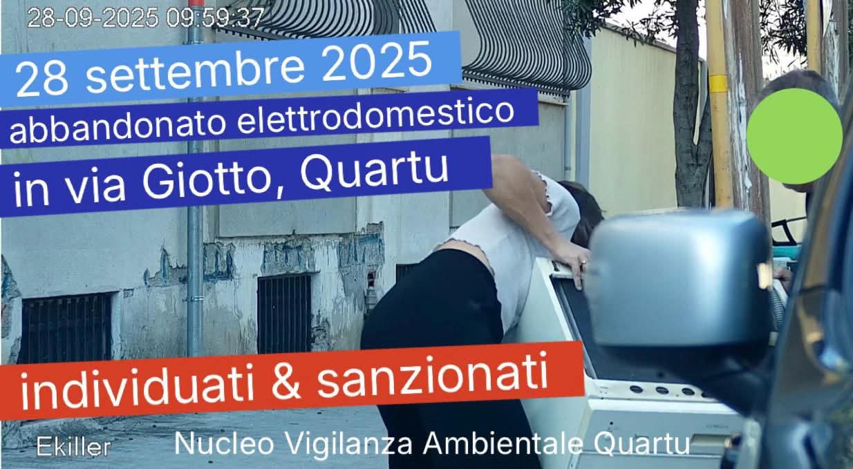Quartu Sant’Elena, ancora furbetti imperterriti che abbandonano i rifiuti in giro per la città: beccati dal sistema di videosorveglianza. Un elettrodomestico da smaltire e finito in strada, ma per i responsabili dell’abbandoo non è andato tutto liscio: individuati e esanzionati. È accaduto in via Giotto il 28 settembre, e, come per gli altri casi risolti, la sinergia di forze messa in campo dal sindaco Graziano Milia, che può contare sulla polizia municipale e il Nucleo Vigilanza Ambientale, funziona eccome.
