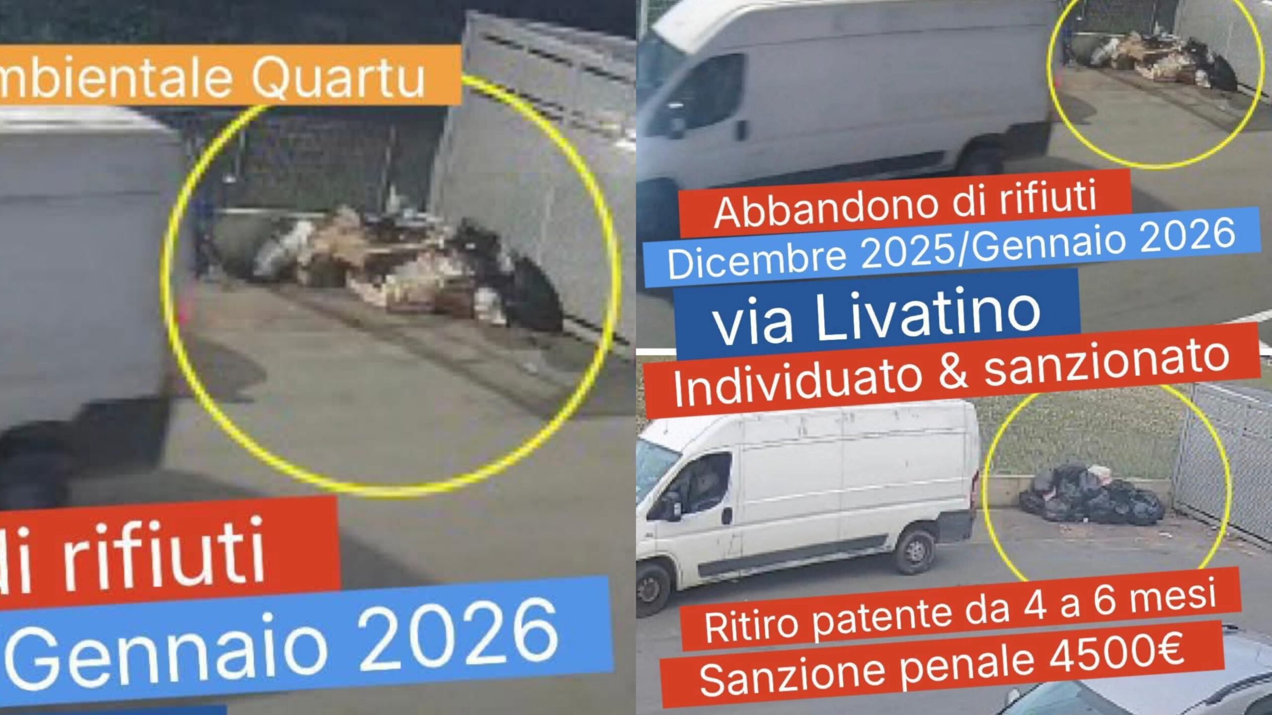 Quartu Sant’Elena, scarica rifiuti in via Livatino: sanzione penale e patente ritirata. Sia a dicembre che a gennaio un individuo ha abbandonato decine di sacchi colmi di immondizia, trasportati con il furgone sino all’angolo della via. Il sistema di videosorveglianza ha però ripreso le azioni che hanno permesso di identificare l’autore del reato.