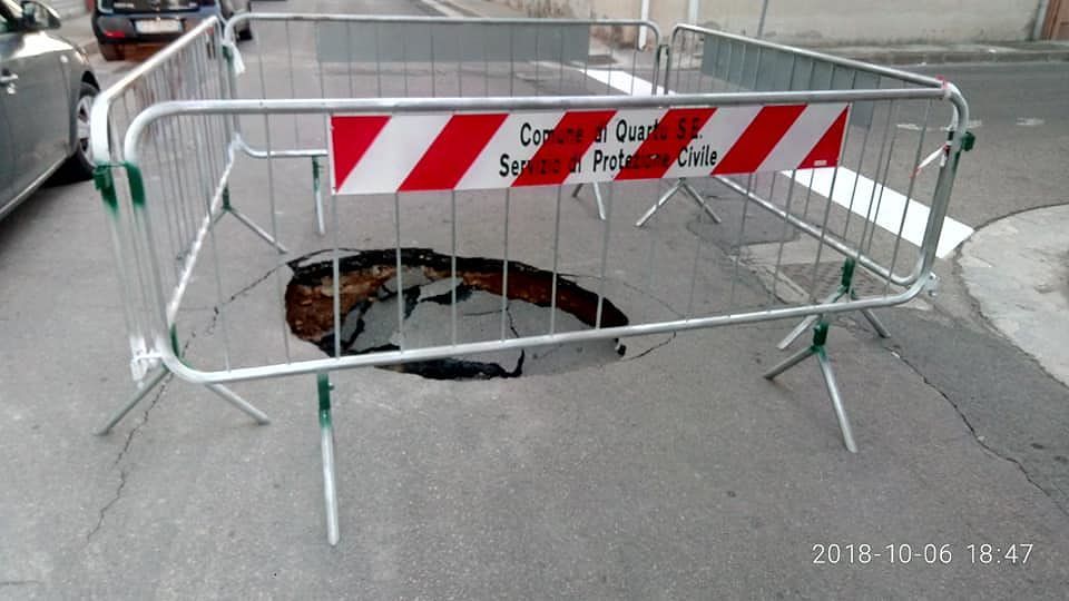 E’ stata transennata l’enorme buca comparsa in via Rossini a Quartu. A fare le spese ieri una ragazza alla guida di una Smart che inevitabilmente transitando è caduta dentro. Per lei tanto spavento e qualche lesione. L’episodio è stato denunciato dal gruppo Facebook ” Quartu e dintorni, problemi e soluzioni”, che pubblica una nuova foto con gli sviluppi sulla vicenda che ha preoccupato non poco gli automobilisti. La voragine è stata transennata, si attende ora l’intervento per ripristinare al più presto il manto stradale.